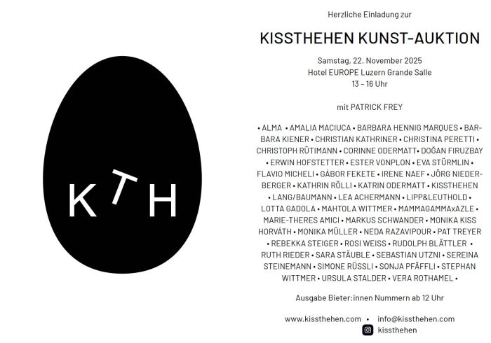 Kunstauktion Kissthehen, 22.11.2025 Hotel Europe, Grande Salle, 13.00-16.00