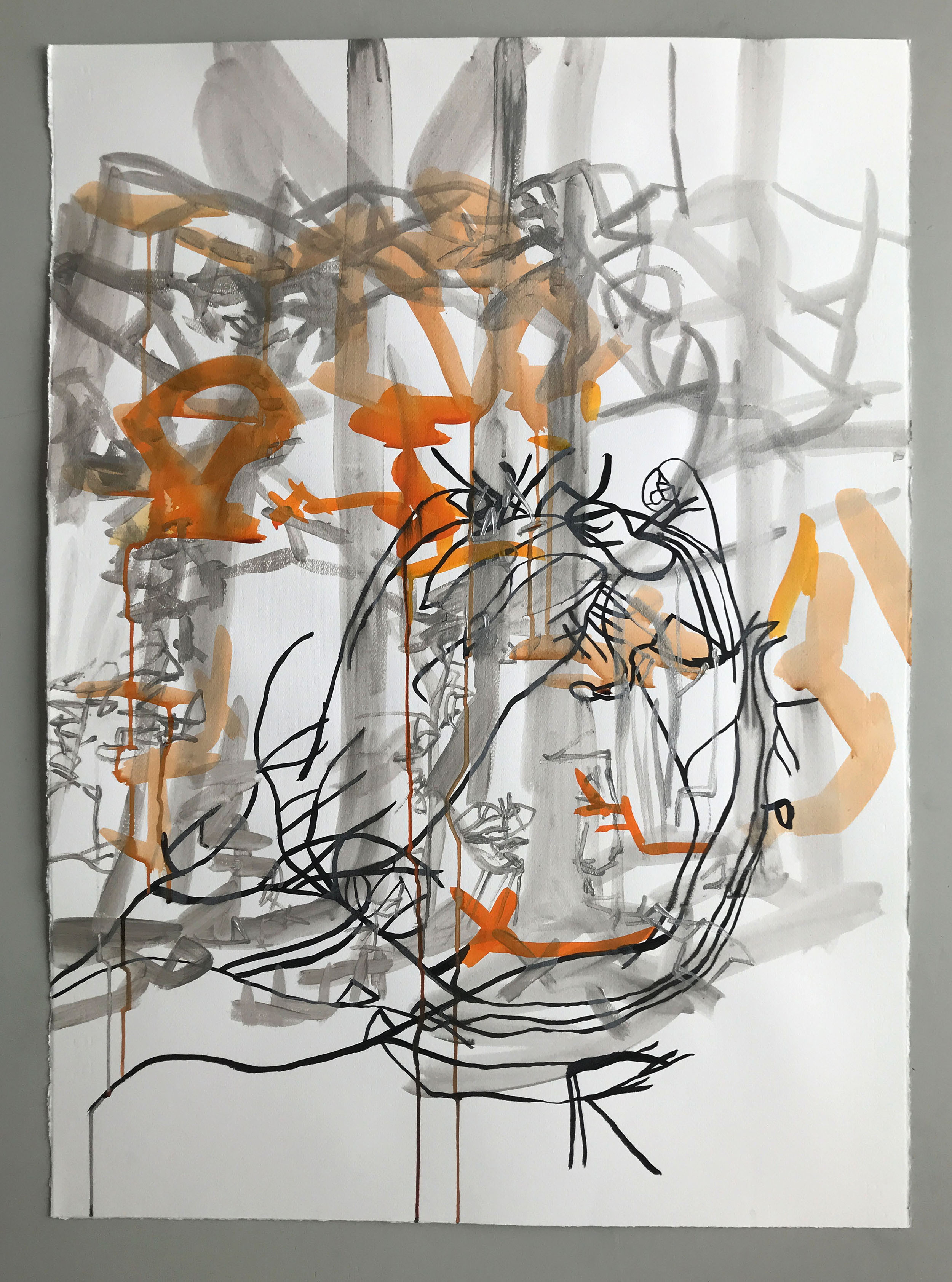 «sediments of time», Bleistift und chinesische Tusche auf Bütten, 70 x 100 cm, 2022.