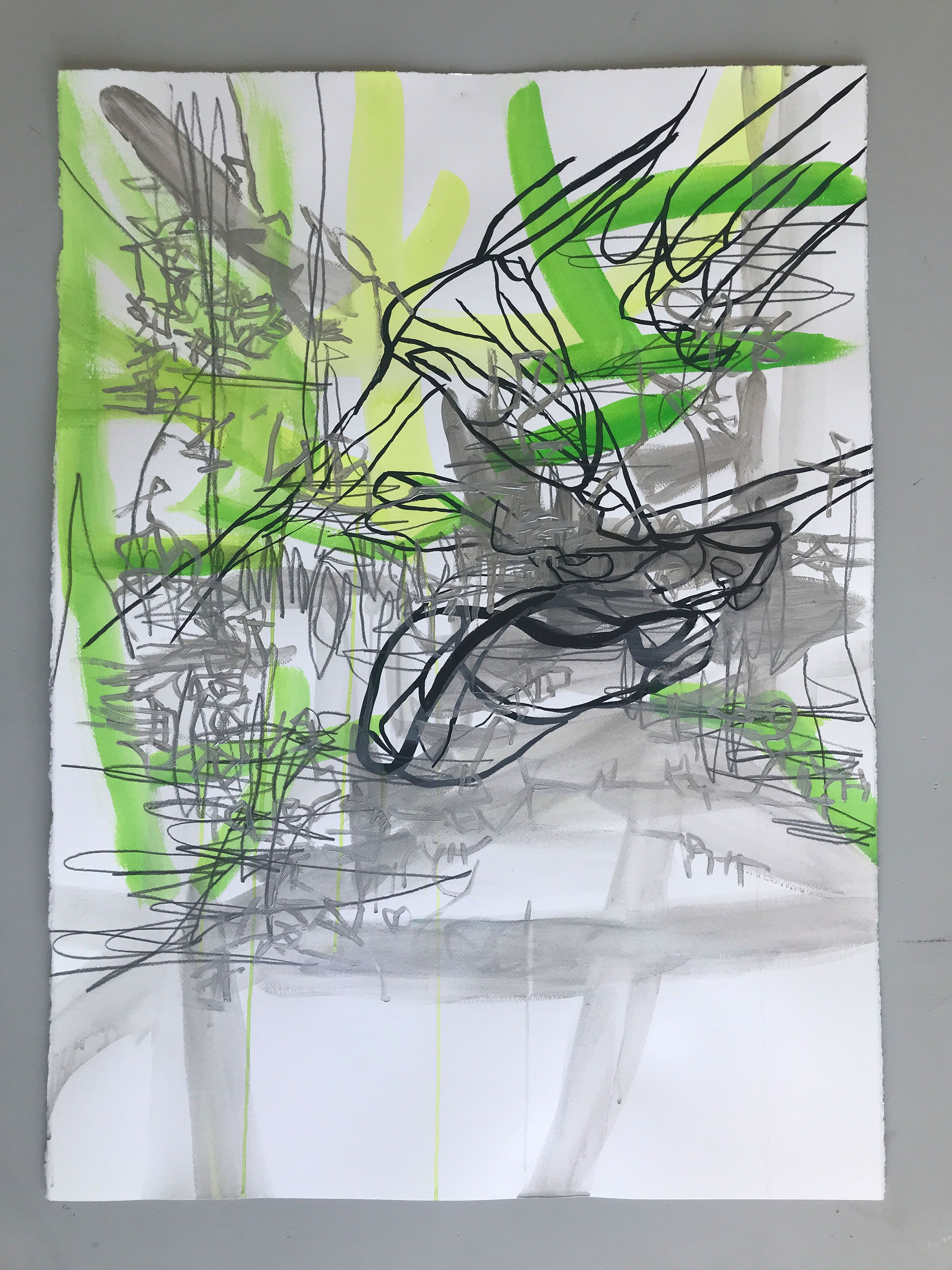 Abläufe der Erinnerung vergleicht die Künstlerin mit der Sedimentation. Schicht um Schicht überlagern sich Sehspuren auf dem Blatt, wobei ein verdichteter Raum entsteht. Weiter hat sich die Künstlerin mit dem Klimawandel beschäftigt. Geologische Prozesse- etwa Bergstürze - stehen mit der Verschiebung von Klimazonen und der Veränderung der Vegetation in Verbindung. Der Fokus wurde daher vom Gestein auf Pflanzen erweitert.
