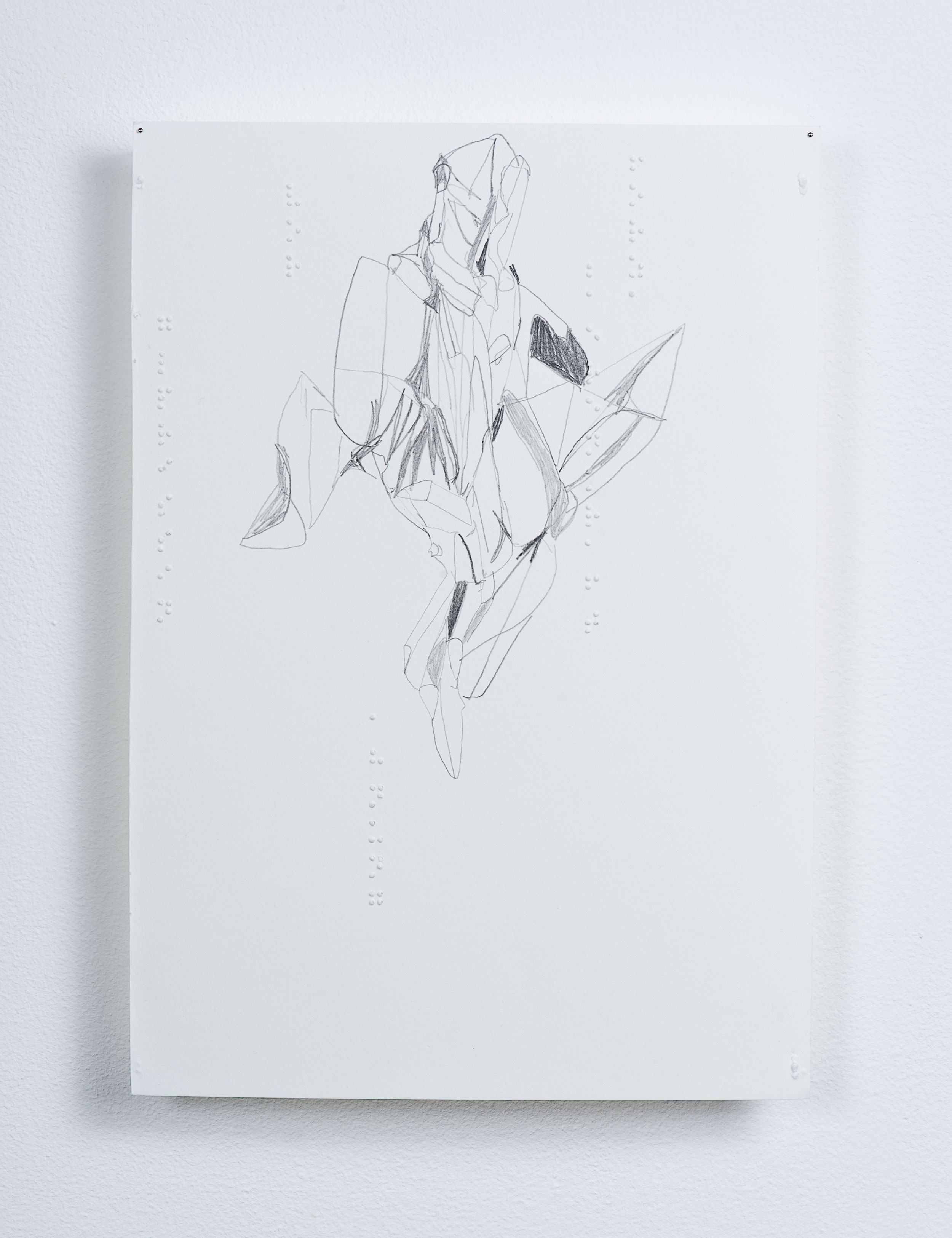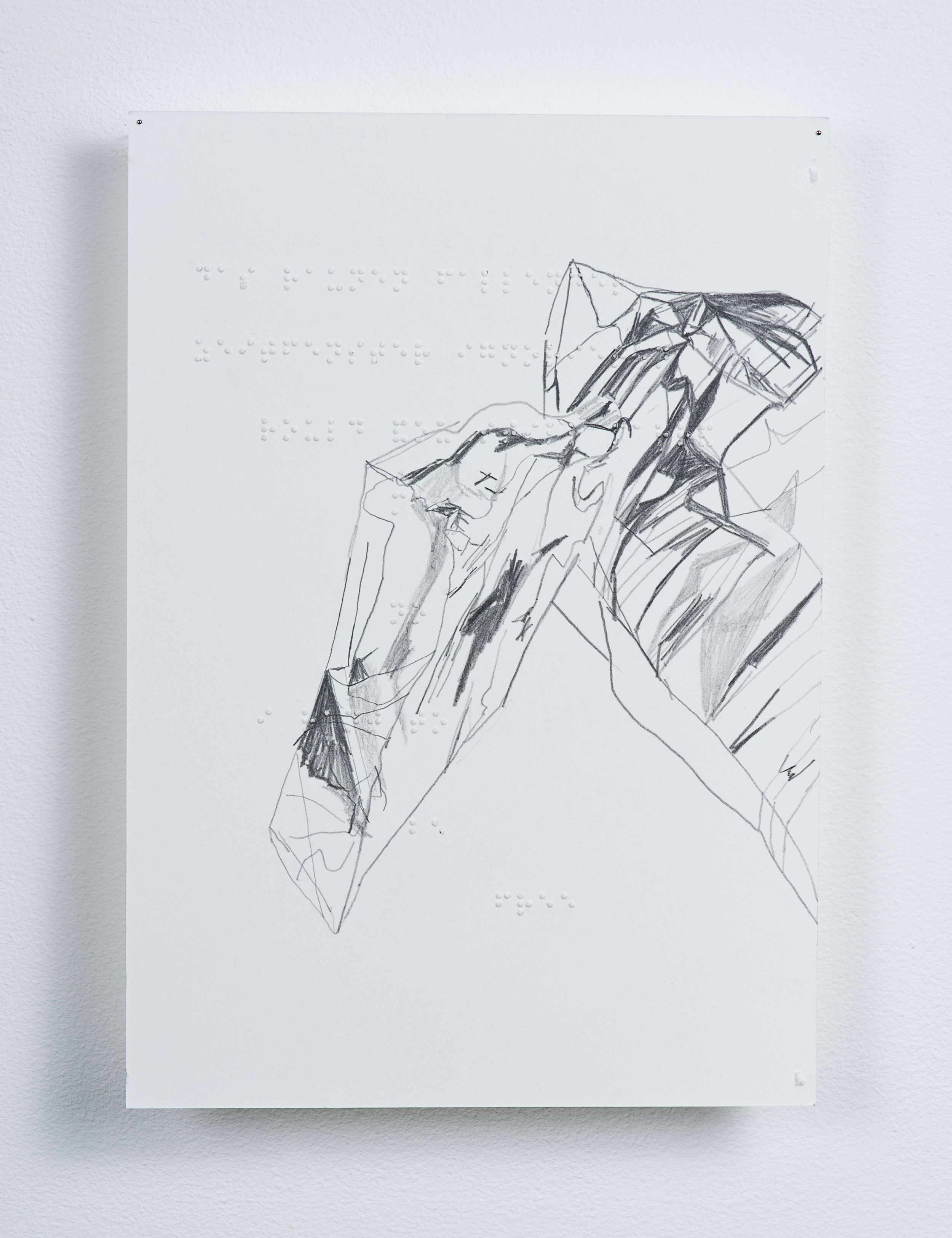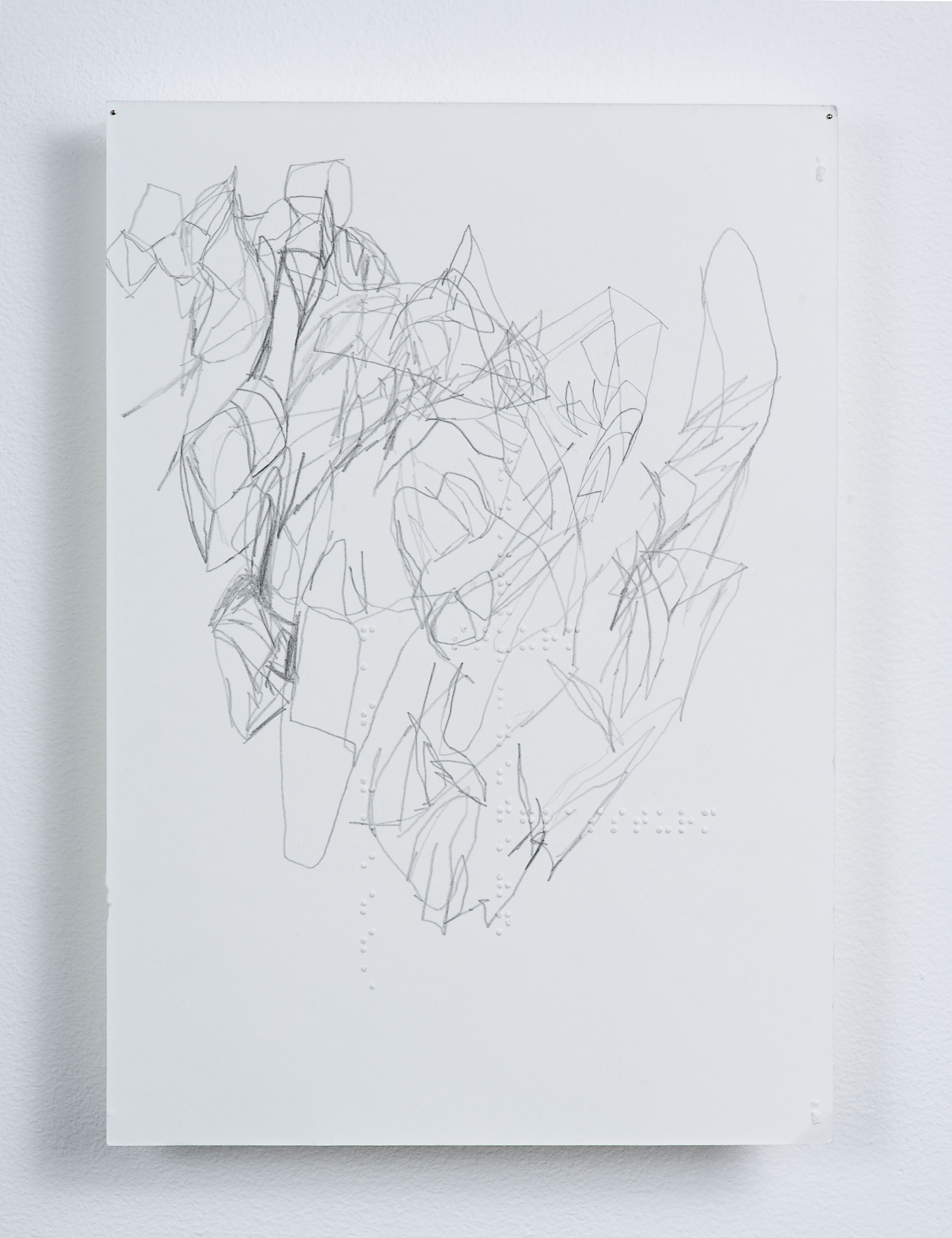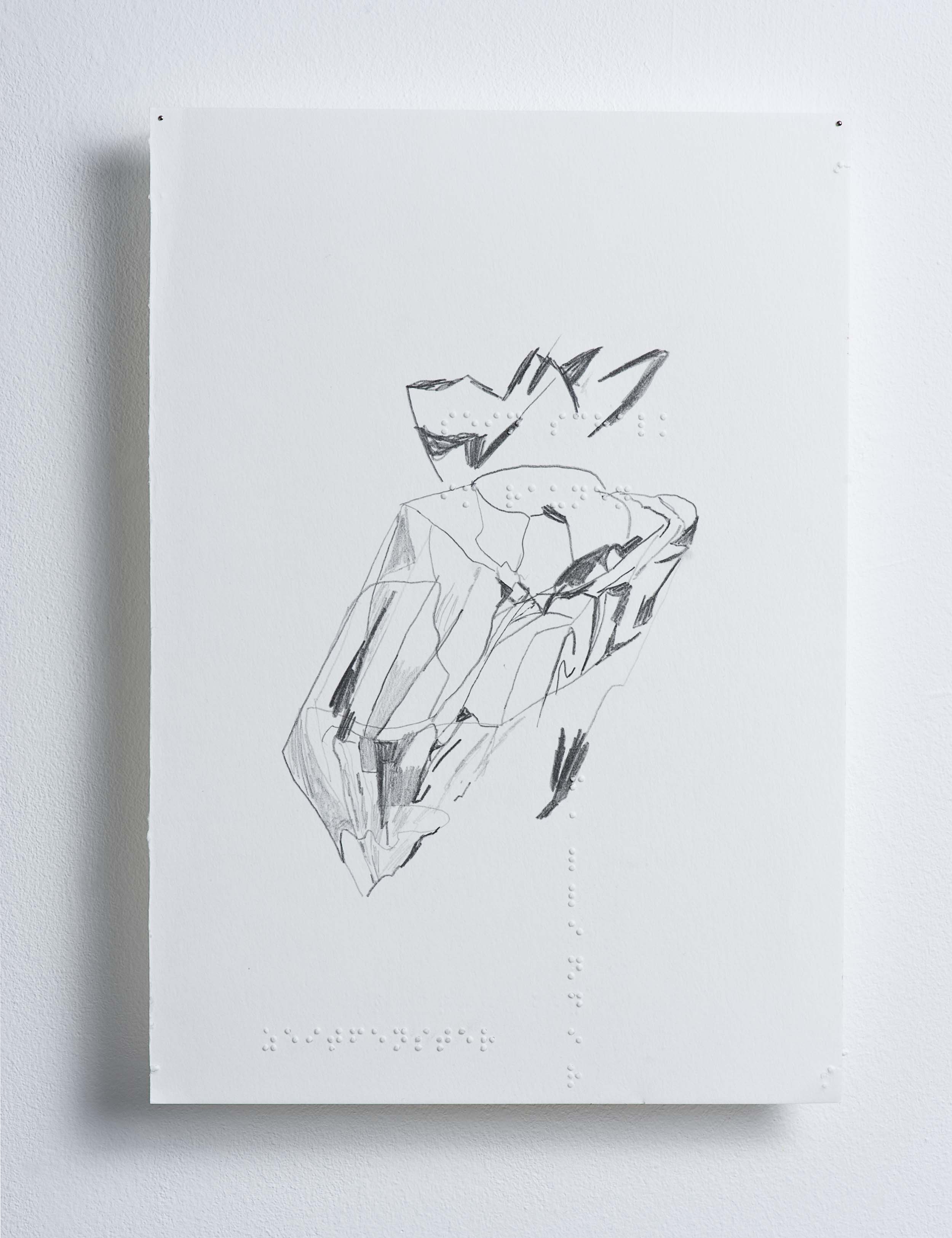 Bleistift auf Bütten, Brailleschrift, 20.5 x 29.5 cm.
