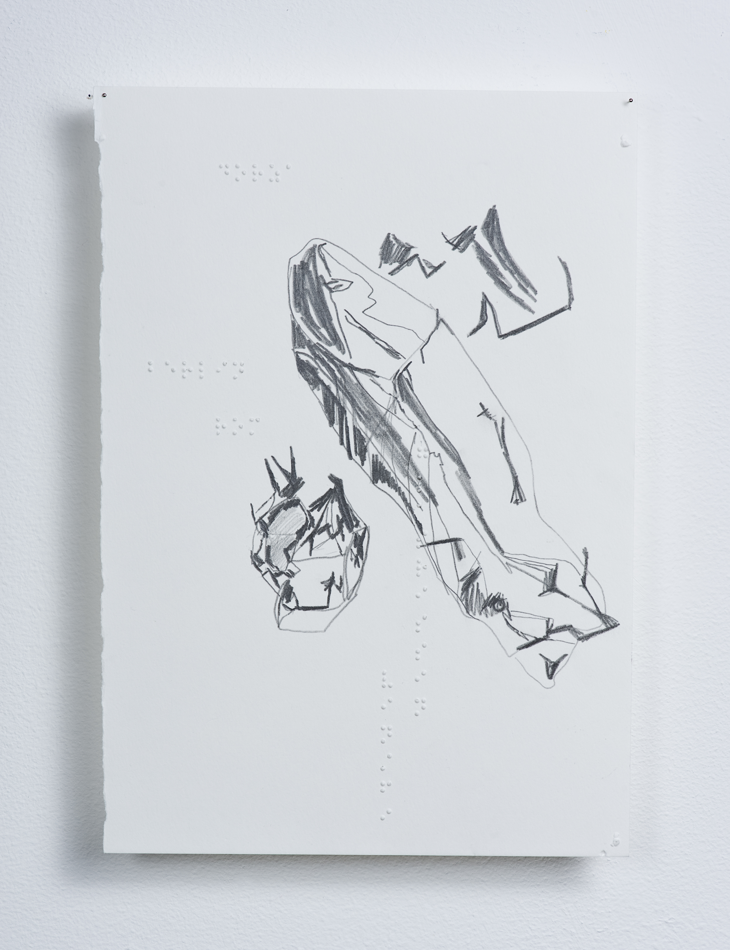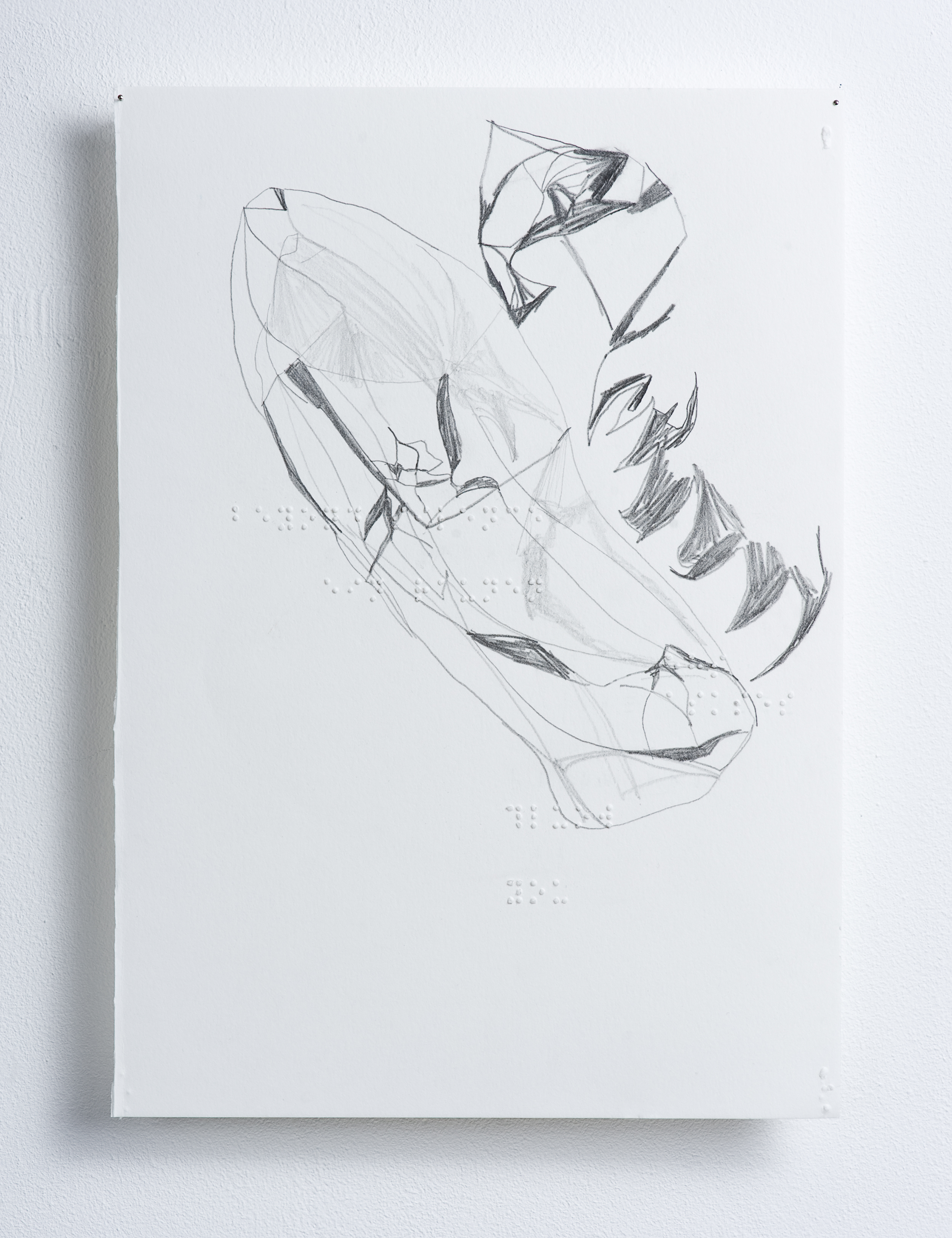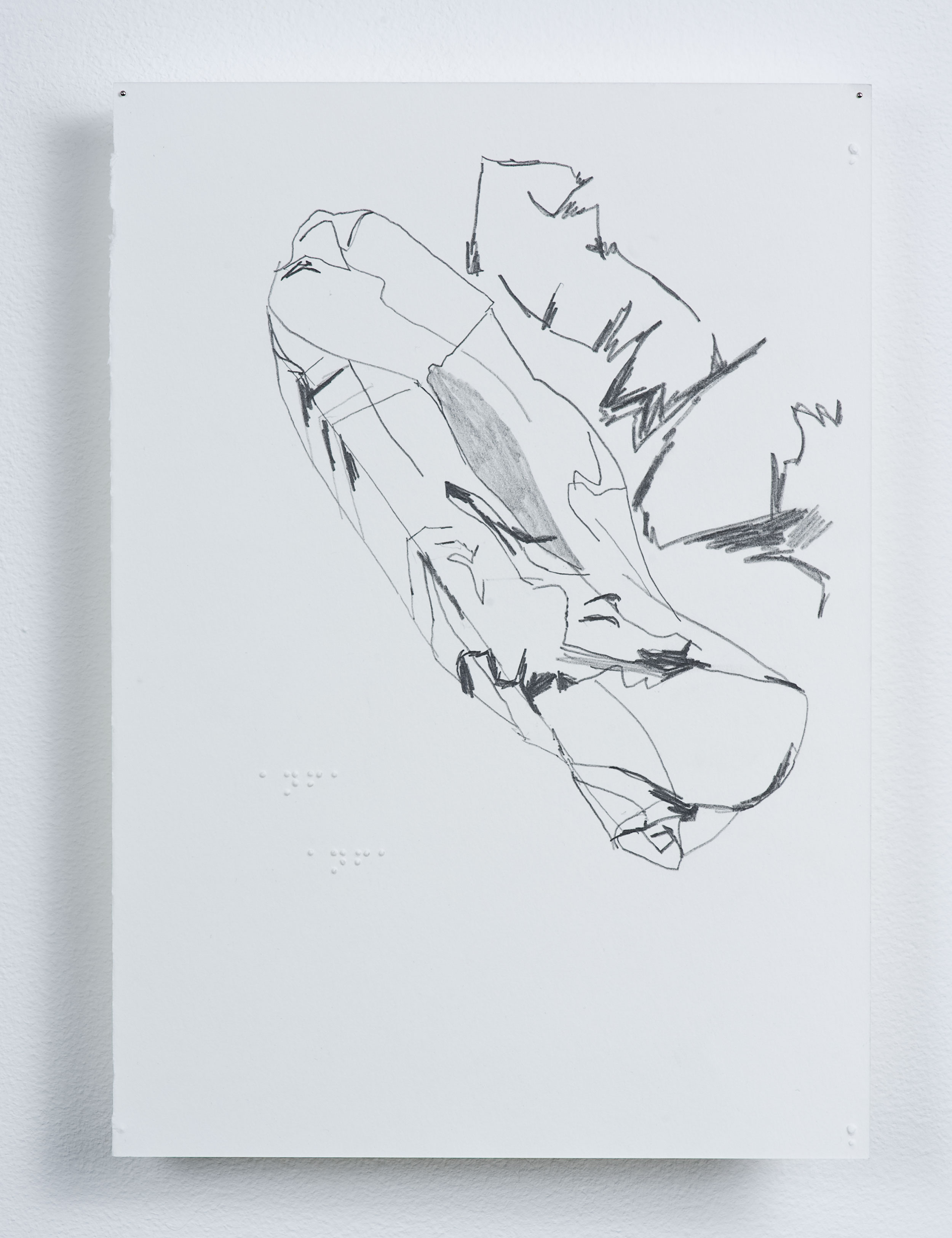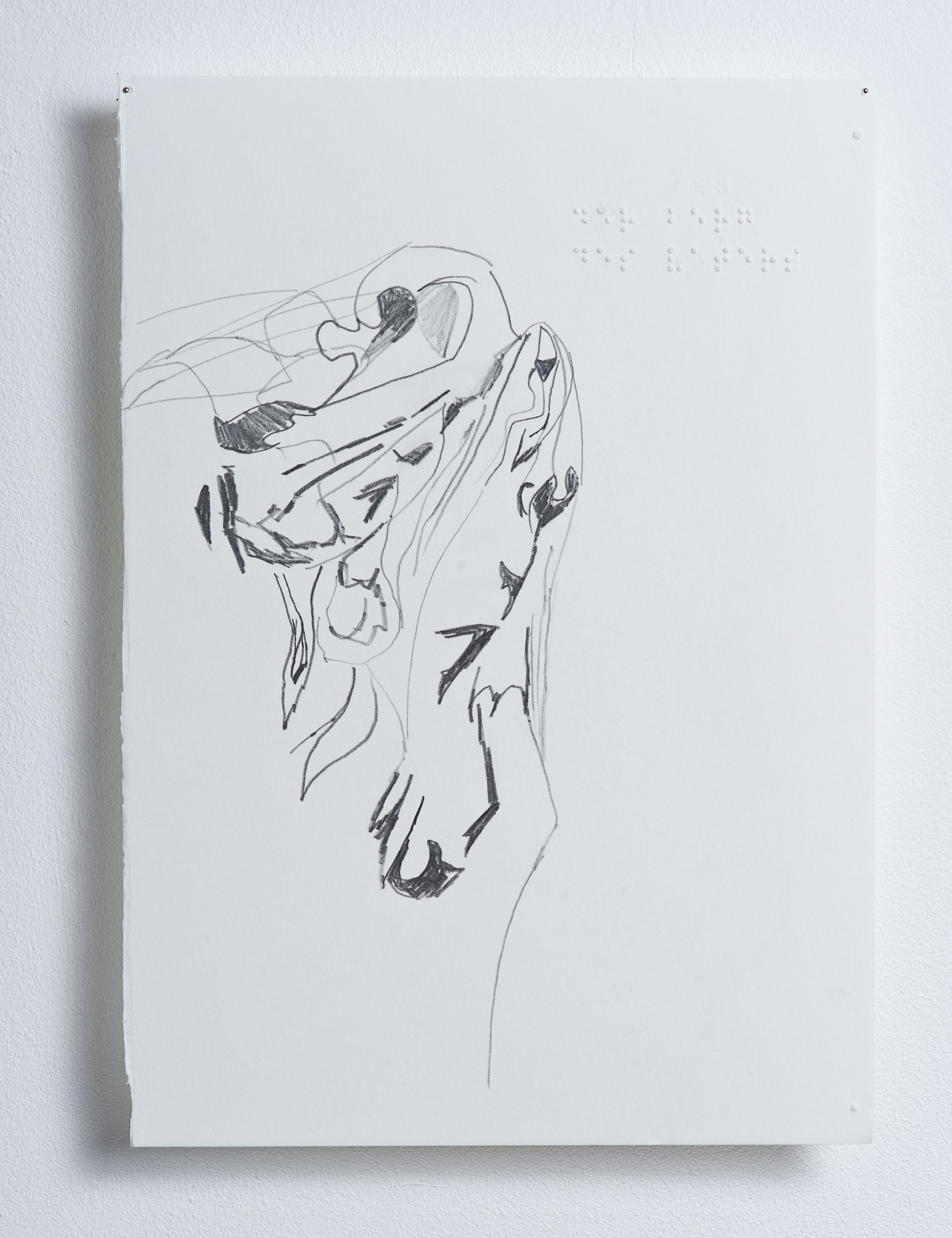 Bleistift auf Bütten, Brailleschrift, 20.5 x 29.5 cm.